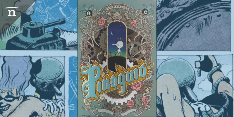 O Pinóquio de Winshluss é uma adaptação bastante livre do livro clássico de Carlo Collodi de 1881. Ambas as obras diferem bastante da adaptação cinematográfica da Disney, que deu uma bela aliviada na história original, tirando diversos elementos adultos do enredo que eram essenciais para as lições que Collodi queria que fossem passadas. O diferencial é que Winshluss fez, talvez, a versão mais liberal do conto clássico, mudando diversos elementos originais, trazendo-os mais pra perto de nossa realidade.